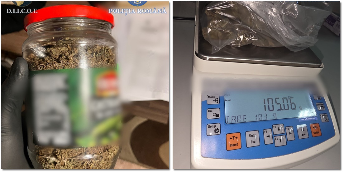Într-una dintre primele locuințe scotocite, polițiștii au găsit peste 100 de grame de stupefiante, ascunse într-un borcan în care fuseseră murături, și un cântar pentru droguri.