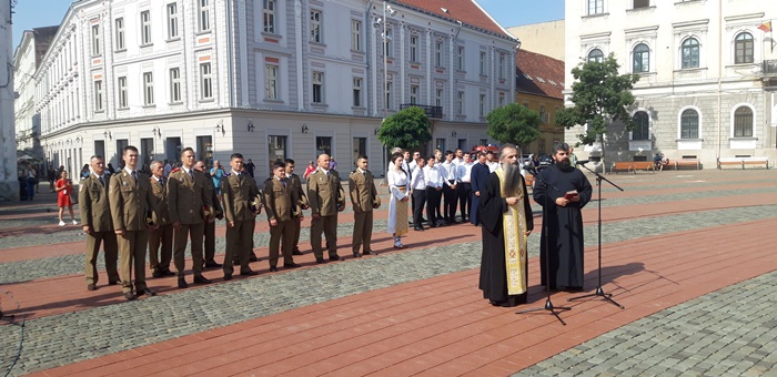 Ceremonia din centrul Timisoarei a inceput cu o scurta slujba religioasa, dupa care a urmat discursul prefectului Zoltan Nemeth.