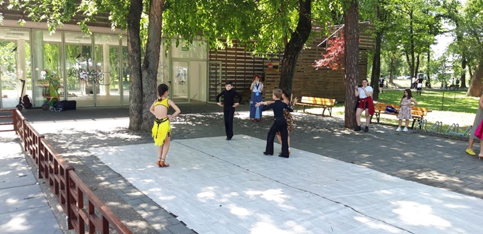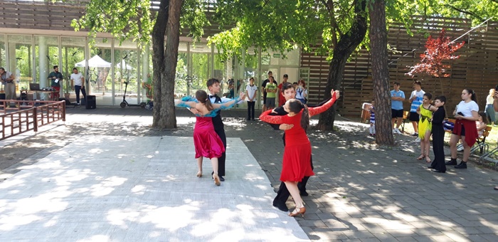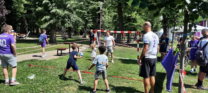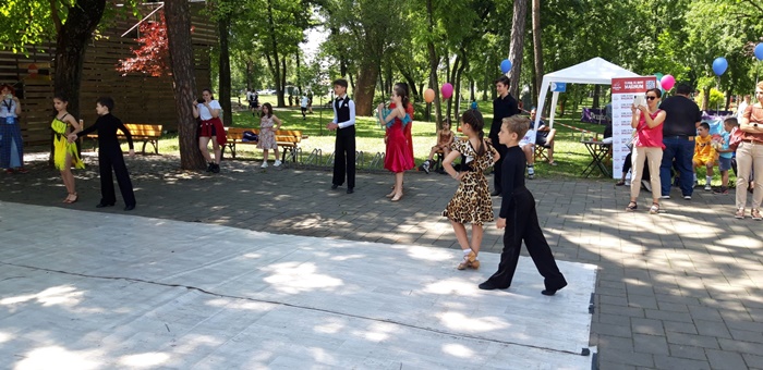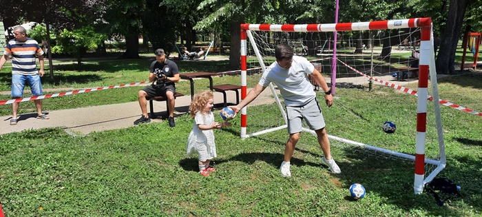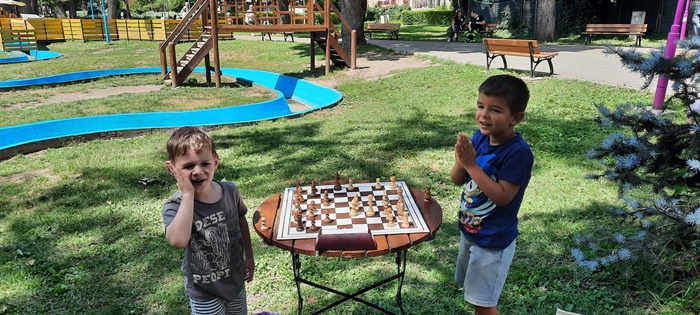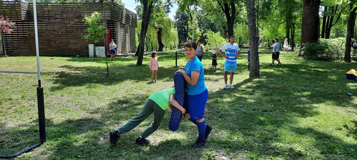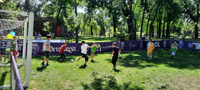 Intre copacii din parc au fost improvizate terenuri de fotbal si de rugby unde copiii au incins rapid partide, iar in vecinatate au fost amplasate mese de sah.