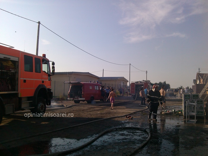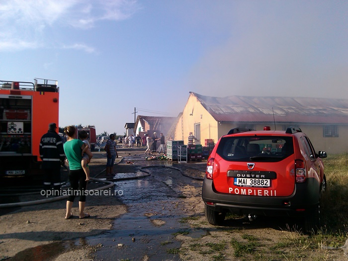 Sute de litri de alcool si de sucuri s-au pierdut in urma incendiului. Specialistii si voluntarii ISU Banat au intervenit cu 5 autospeciale cu apa si spuma si cu o autoscara mecanica. Focul a ajuns si la casa de langa depozit, insa pompierii au reusit sa il lichideze la timp, chiar inainte sa se intinda la un depozit de mobila. Incaperea acestuia s-a umplut de fum.