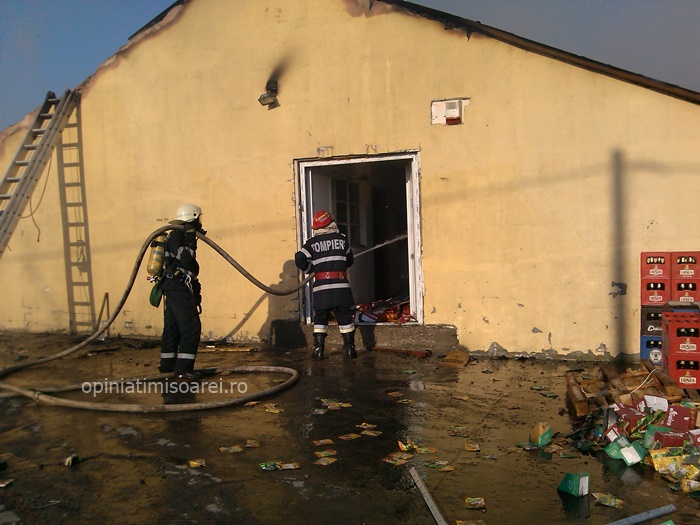 TIMISOARA. Un depozit de bauturi alcoolice din localitatea Giarmata a izbucnit in flacari, joi dupa-amiaza. Pompierii s-au chinuit mai bine de o ora sa stinga flacarile, care au ajuns si la o casa din apropiere si riscau sa cuprinda si un depozit plin cu mobila.