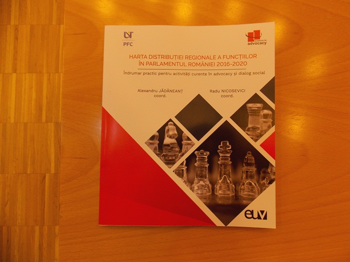 O spun studentii masteranzi de la Universitatea de Vest, care au editat o culegere-document in care sunt prezentate pozitiile ocupate de parlamentarii din vestul tarii in comisiile din cele doua camere. Volumul este intitulat “Harta distributiei regionale a functiilor in Parlamentul Romaniei 2016-202”, si a fost realizat de 27 de studenti masteranzi din anii 1 si 2, in colaborare cu Academia de Advocacy.