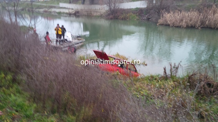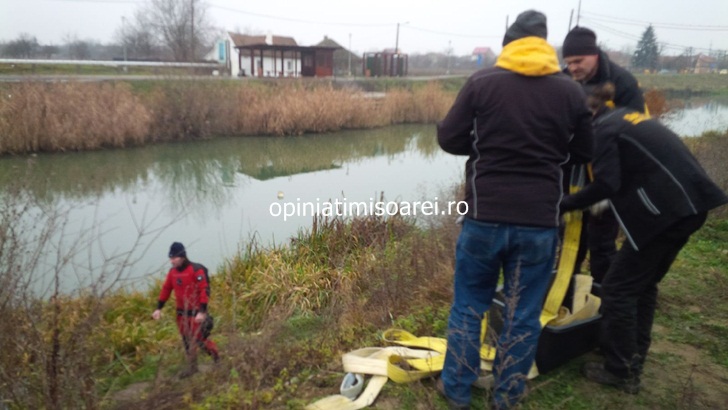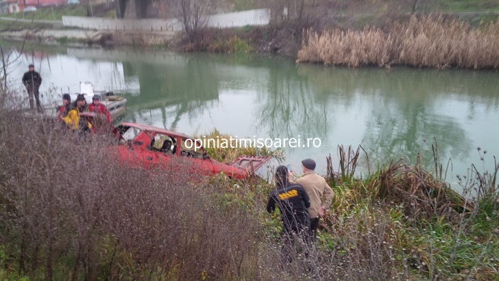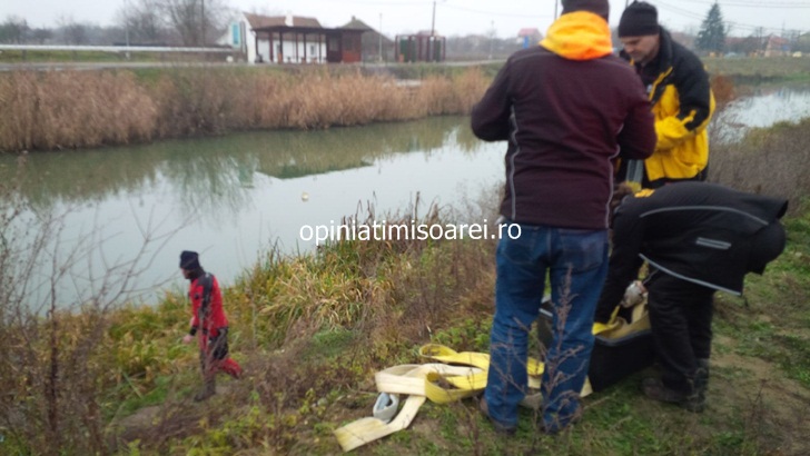 TIMISOARA. Ampla desfasurare de forte pe Bega! Un antrenament obisnuit al scafandrilor de la Salvo a dus la o descoperire neobisnuita! Un autoturism zacea pe fundul canalului.