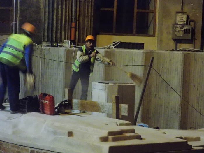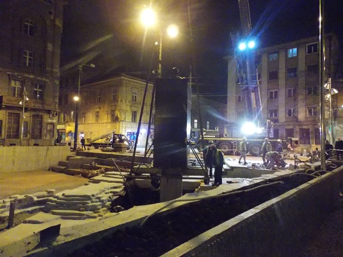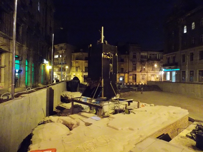 TIMISOARA. Este intrerupta circulatia tramvaielor, iar pietonii sunt indrumati de politisti sa ocoleasca piata Sfantul Gheorghe din centrul Timisoarei. De mai bine de doua ore muncitorii lucreaza pentru a muta statuia Sfantului Gheorghe inapoi in zona vestigiilor, de unde a fost indepartata, cand au inceput lucrarile in zona.