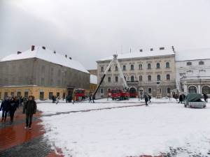 Inspectoratul pentru Situatii de Urgenta a pregatit si o expozitie a dotarilor, mai multe masini de interventie fiind expuse in Piata Libertatii.