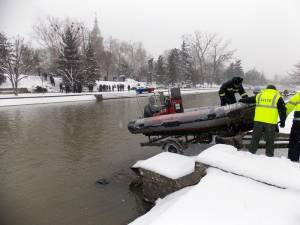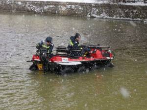 TIMISOARA. Pompieri, genisti, scafandri si caini de urma au luat parte la o ampla operatiune de recuperare a unui obuz din al doilea razboi mondial recuperat din canalul Bega.