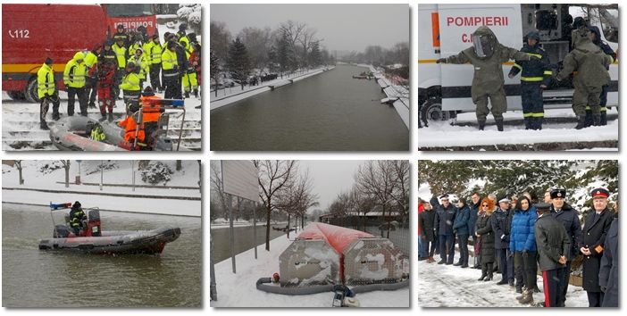 „In acest exercitiu a fost o situatie complexa de protectie civila si anume cresterea debitelor raului Bega. S-a impus ceea ce inseamna protejarea unor spatii limitrofe raului Bega. Pentru aceasta s-a folosit un dig modular, iar in urma aluviunilor un element de munitie ramas neexplodat din timpul conflagratiilor mondiale a fost adus la suprafata, fapt pentru care a necesitat interventia de specialitate. Repet, scopul exercitiului a fost in primul rand cooperare cu tot ce inseamna servicii in situatii de urgenta. Am venit cu o parte a ambarcatiunilor din datoare la Inspectoratul pentru Situatii de Urgenta, de asemenea echipa pirotehnica, echipa de prima cercetare CBRN, tot ce inseamna chimic-biologic-radiologic si nuclear, descracerare grea si am folosit un utilaj utv, autospeciala senilata care permite accesul in apropae toate tipurile de teren, inclusiv mediul acvatic„, a declarat Lucian Mihoc, inspector Sef al Inspectoratului pentru Situatii de Urgenta Timis.