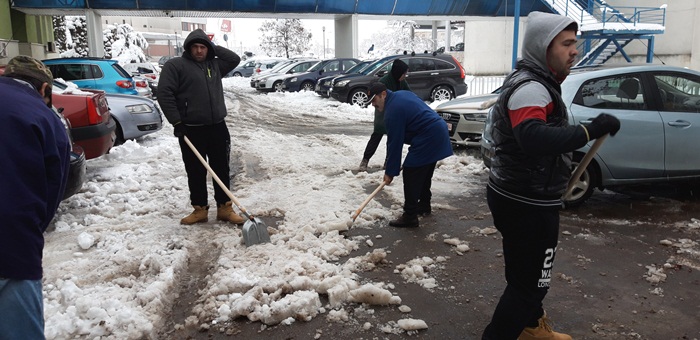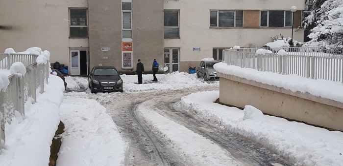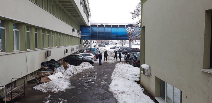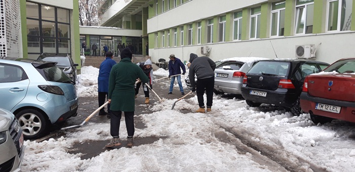 Odata cu intetirea ninsorii, intregul compartiment administrativ al spitalului a iesit la curatarea zapezii pentru ca ambulantele sa poata aduce pacientii in siguranta in unitate.