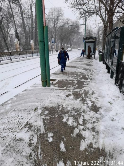 UPDATE: Mobilizare la deszapezire a fost in randul angajatilor STPT. Reprezentantii societatii s-au asigurat ca toate statiile mijloacelor de transport sunt curatate, pentru ca timisorenii sa urce si sa coboare in siguranta din mijloacele de transport.