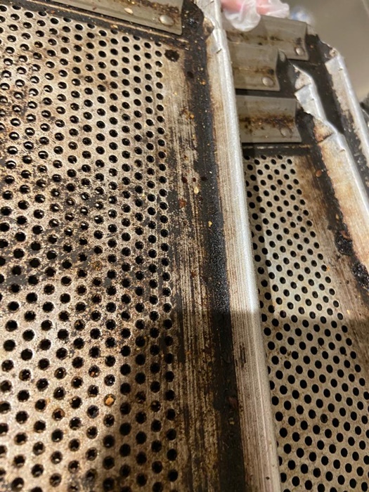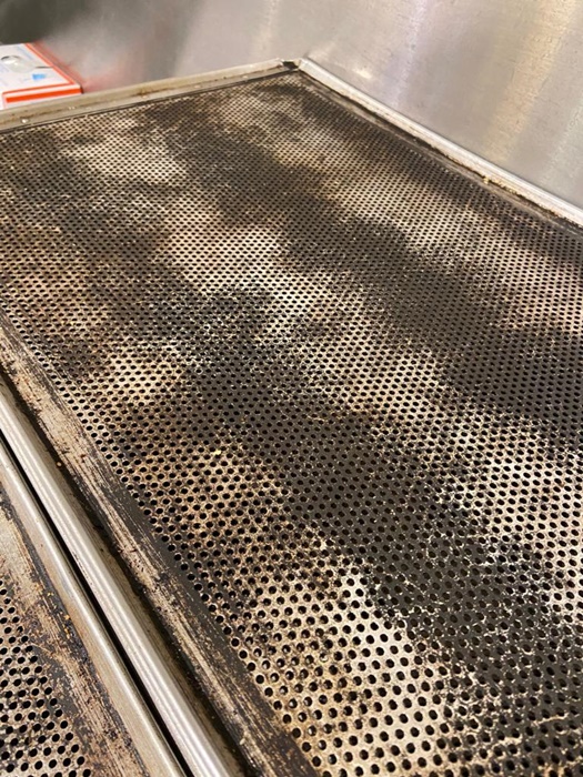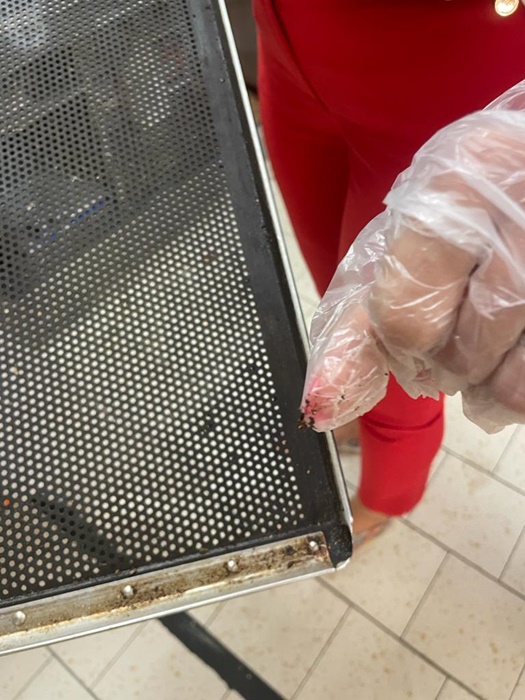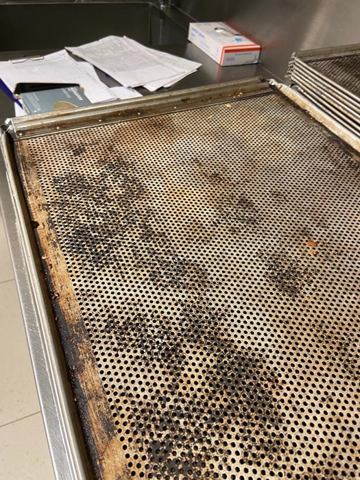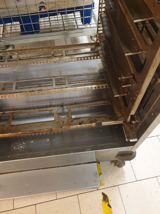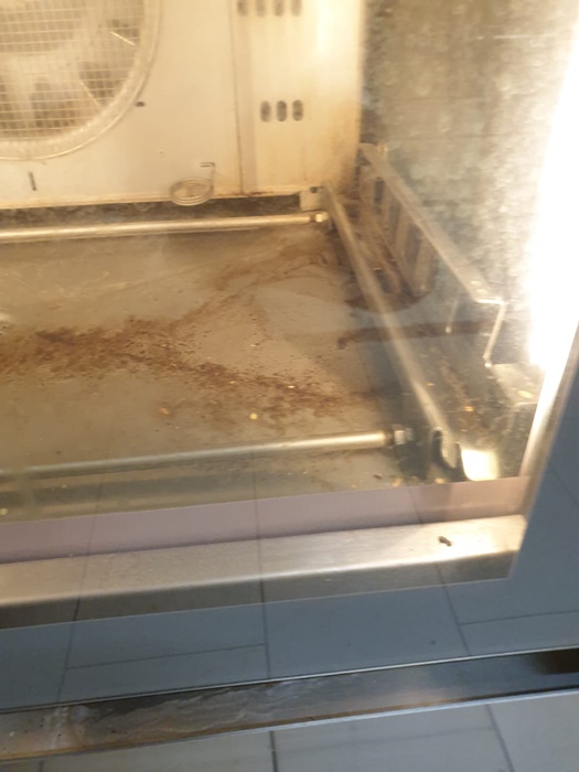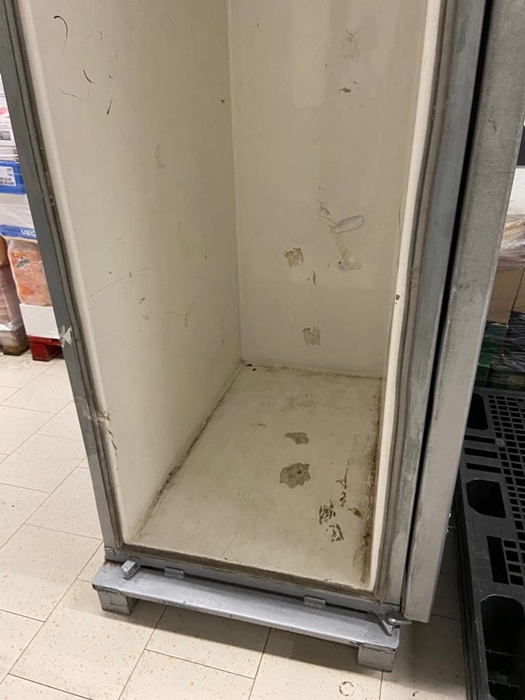 In zona de patiserie au fost gasite cuptoare si spatii de depozitare necuratate, tavi arse sau lazi frigorifice murdare, cu scurgeri de lichide sau acumulari masive de gheata, praf, resturi alimentare sau par.