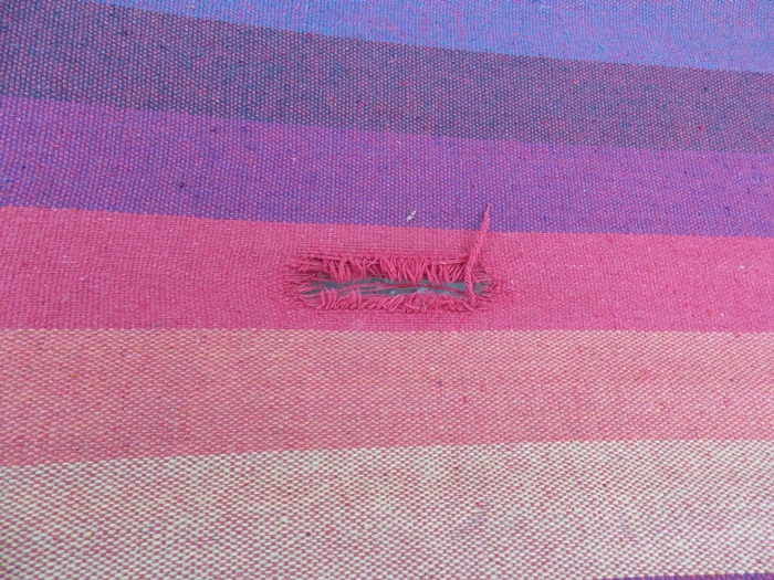 Majoritatea au panza rupta in unul sau mai multe locuri. In trei dintre cazuri, atat panza, cat si legaturile s-au rupt si acum atarna pe pamant.