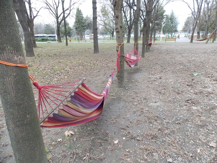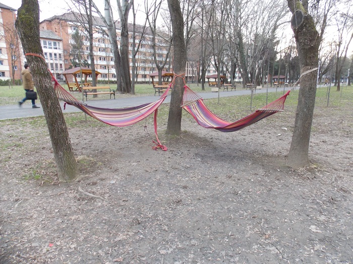 TIMISOARA. In urma cu aproape un an, unul dintre cele mai vechi parcuri din Timisoara era complet remodelat. In zona au fost montate foisoare, banci noi, au fost refacute aleile si a fost montat si un sistem de iluminat, insa au fost amplasate si hamace.
