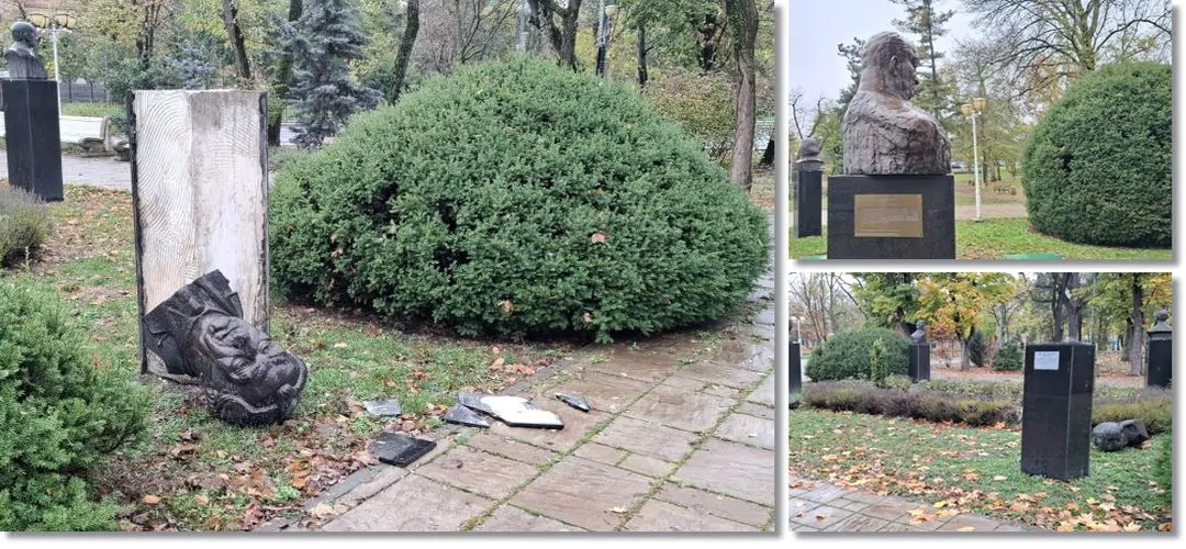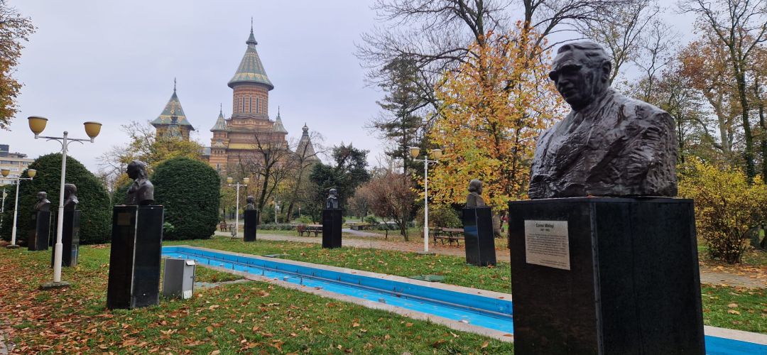 TIMIȘOARA. Acte de vandalism la Timisoara. Mai multe busturi reprezentând personalități ale orașului au fost vandalizate pe Aleea Personalităților din Parcul Central Scudier, aflat in vecinatatea Catedralei Mitropolitane.