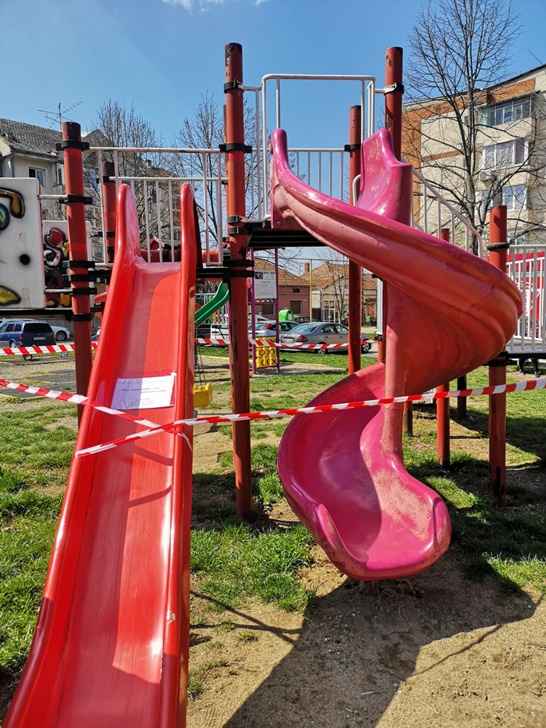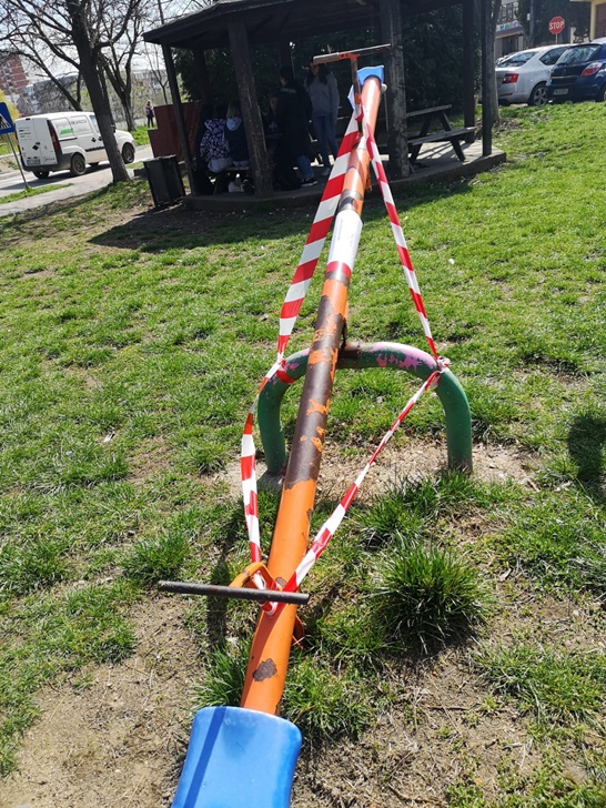 Comisarii ANPC au legat benzi pe tobogane, balansoare si leagane pentru a nu permite copiilor sa le foloseasca.