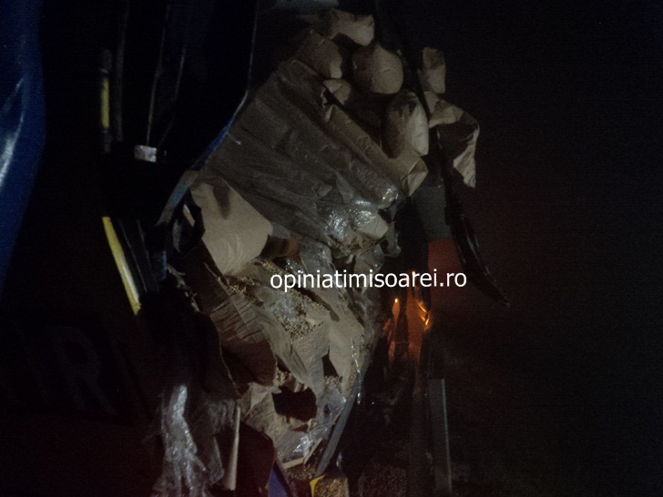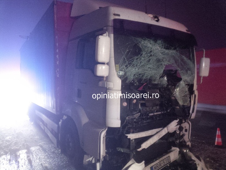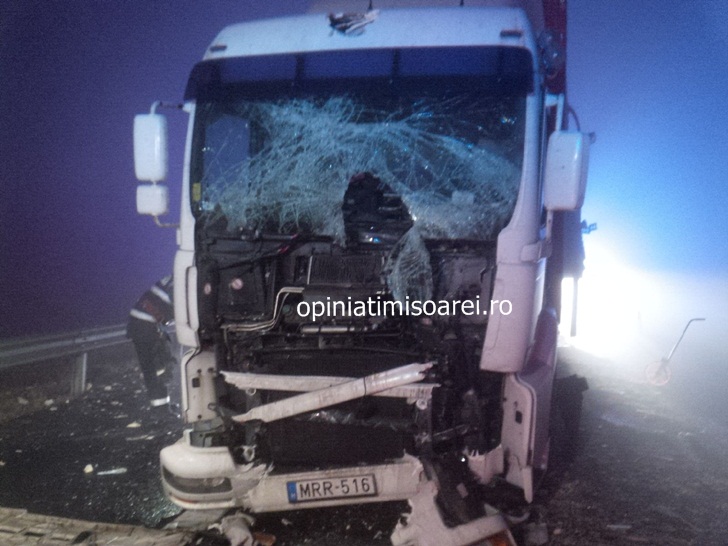 In urma impactului, conducatoarea auto din Ungaria a fost ranita si a ramas blocata sub bord. Doua echipaje de pompieri au intervenit pentru a o recupera pe femeie din cabina zdrobita. Soferita a fost transportata de urgenta la spital in Timisoara.