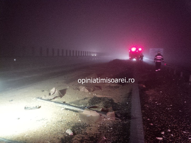 TIMISOARA. Accident pe Autostrada Timisoara – Arad noaptea trecuta din cauza cetii dense care