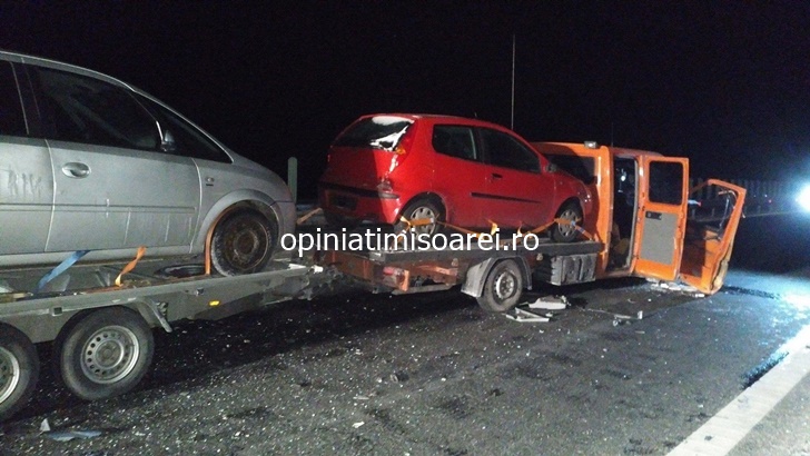 TIMISOARA. Accident noaptea trecuta pe Autostrada ce leaga Timisoara de Lugoj, in care au fost implicate mai multe masini. Traficul a fost dat peste cap mai bine de o ora.