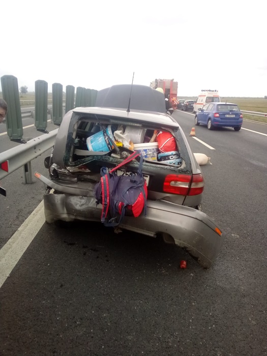 TIMISOARA. Accident rutier mai putin obisnuit pe Autostrada Timisoara – Lugoj, in apropiere de localitatea Iosifalau, miercuri seara.