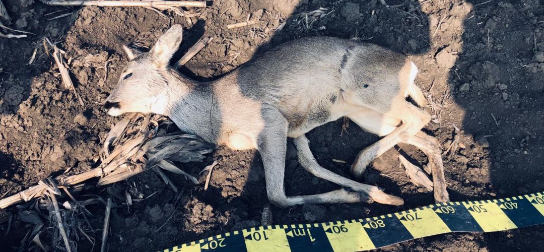 UPDATE: Pana la orele 16.00, fusesera adunate de pe campuri 38 de caprioare (20 de masculi si 18 femele), 2 iepuri si o vulpe. Ancheta continua