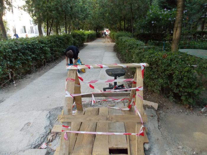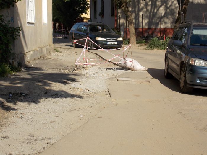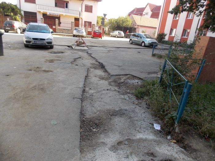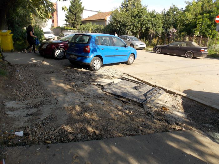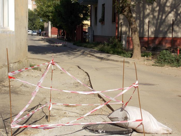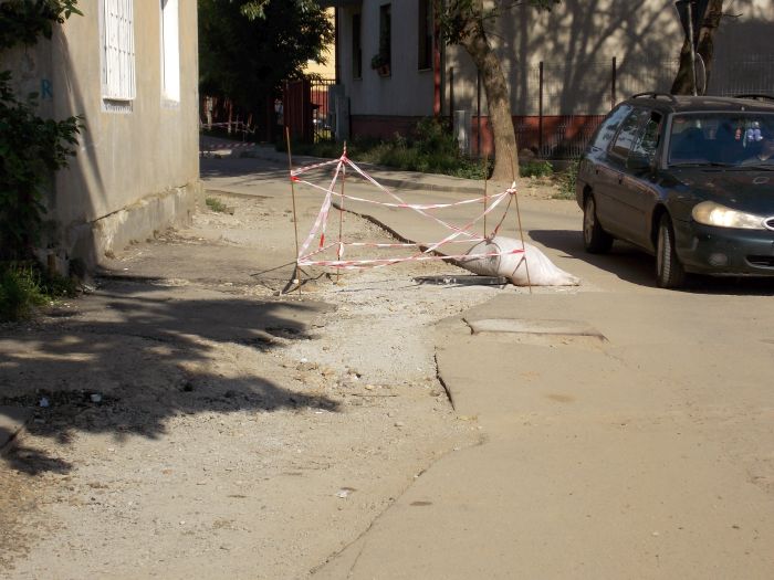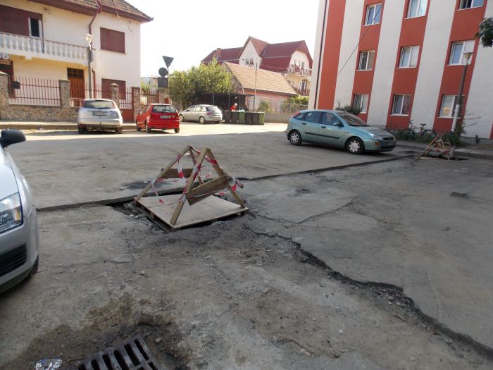 Au fost lasate santuri peste care acum masinile se parcheaza cu greu, iar intre blocuri gurile de canal sunt semnalizate cu niste bucati de lemn ori de fier infasurate intr-o banda de plastic.