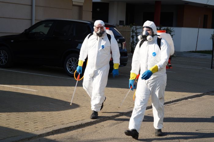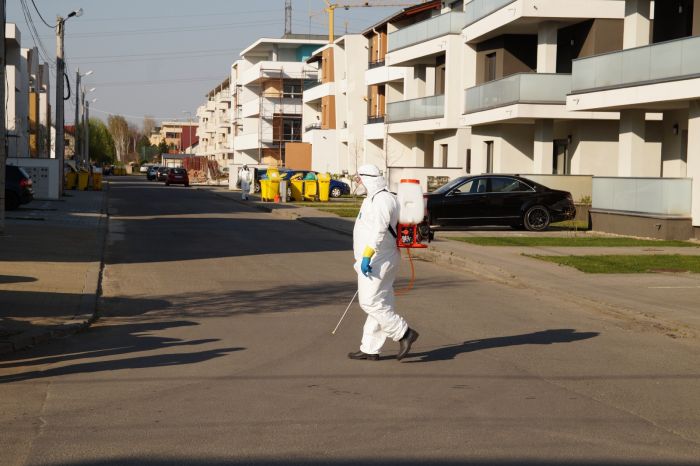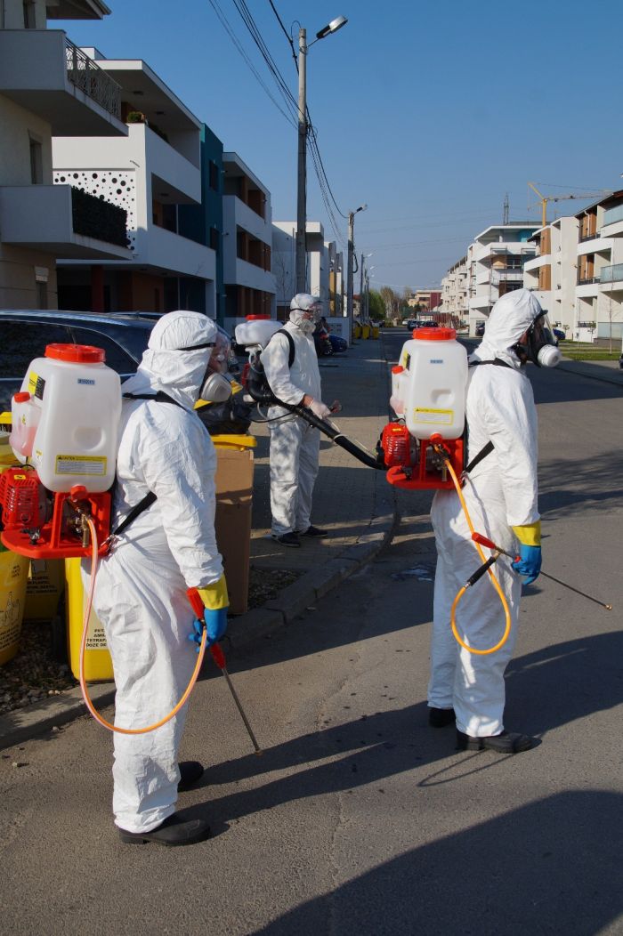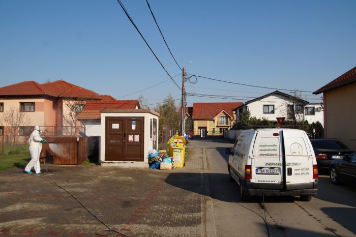 Muncitorii imbracati in costume speciale, au mai dezinfectat intrarile in scarile de blocuri, ghenele de gunoi, aleile de acces, dar si parcarile. Actiunea de dezinfectie este atent monitorizata chiar de primarul Victor Malac. Acesta spune ca vrea sa se asigure ca muncitorii nu vor uita sa dezinfecteze vreo alee sau vreo parcare.