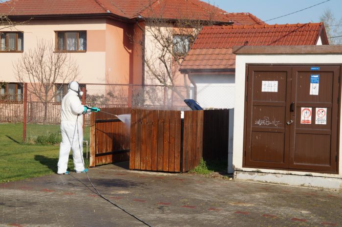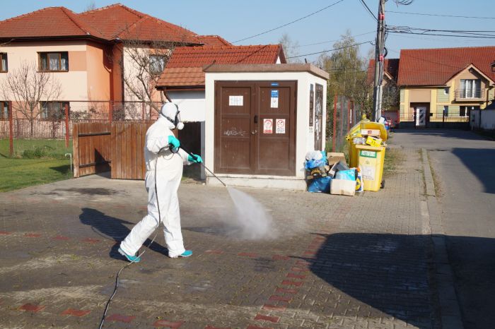 Vorbim de comuna Dumbravita din judetul Timis, unde marti a fost prima zi in care s-au dezinfectat si primele strazi si blocuri de locuinte. Evident ca actiunea nu se va opri aici, ci va continua pana la dezinfectarea tuturor strazilor.