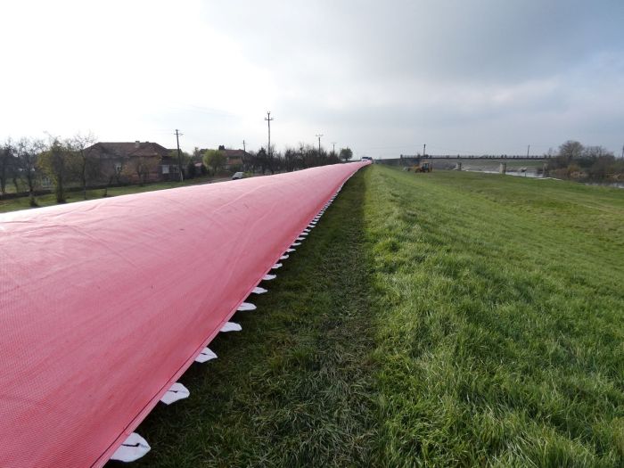 Pentru a evita revarsarea, angajatii Centrului de Interventie Rapida si a Formatiei de lucru Topolovatu Mare au desfasurat in punctele critice 2 baraje mobile: un baraj Aqua Stop, adica panouri mobile din placi de aluminiu asigurate cu folie din material plastic, si un hidrobaraj, care are proprietatea de a se mula pe suprafata solului, confectionat din materiale rezistente. Motopompele au fost conectate la gurile de alimentare ale barajului si au pompat apa din rau direct in corpul hidorbarajului.