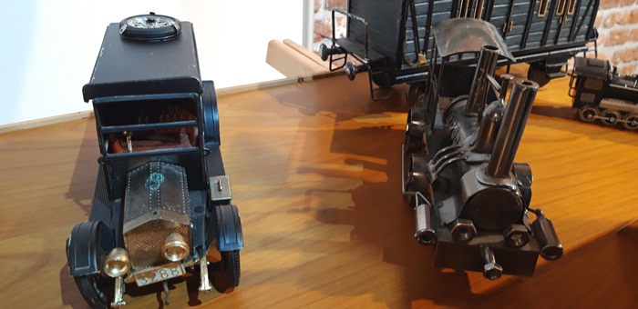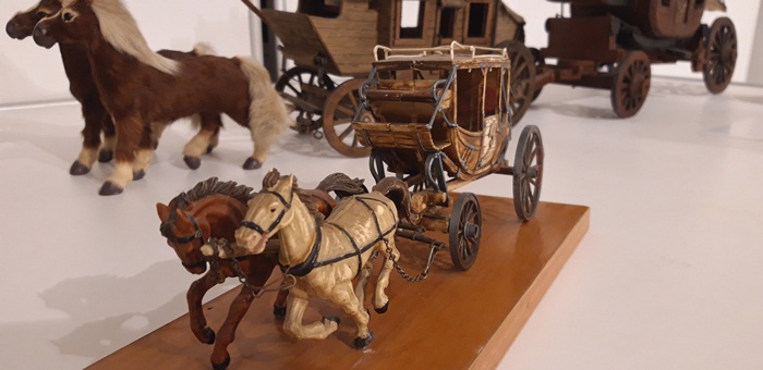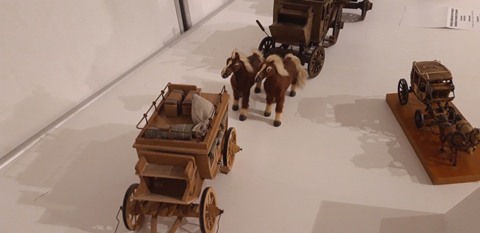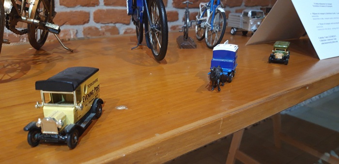 “E colectia mea personala si nu e toata. Colectia incepe de la primul vestitor cu trompeta pana la avion. Si ce am pregatit inedit sunt mijloacele de transport istorice, in toate mediile. Adica terestru, aici e rutier si feroviar, maritim si aerian, exact cum au aparut ele… Colectia am strans-o de-a lungul anilor. Cand am intrat in Palatul Postelor acolo functiona o mare biblioteca, in mare parte cu carti tehnice, dar in cadrul ei nu scria nimic de Posta. Si atunci, de la salariatii vechi, care ce aveau, am inceput sa cer si eu cate o carte. Vreau sa spun ca la urmatoarea expozitie vreau sa etalez intreaba mea biblioteca postala, care cred eu ca este unicat“, a declarat Caius Lazarescu, detinatorul tuturor exponatelor.