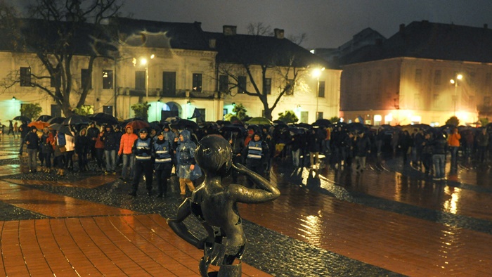 UPDATE: Numarul protestatarilor de la Timisoara s-a dublat, astfel ca la mitingul din centrul orasului participa aproximativ 400 de oameni.