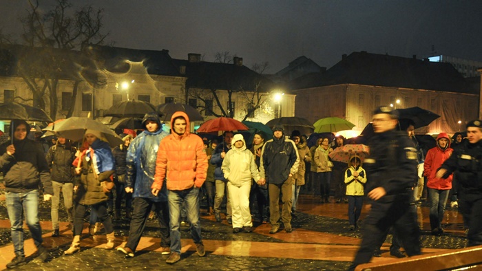 La orele 19.00, cand a fost programata inceperea mitingului, aproximativ 200 de protestatari se aflau in centrul orasului.