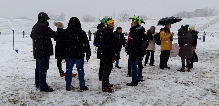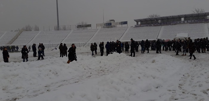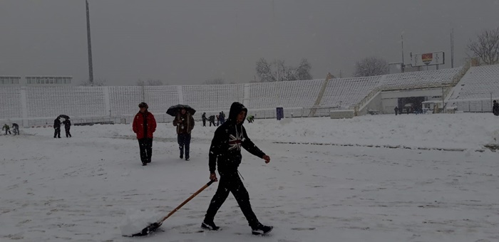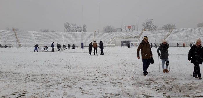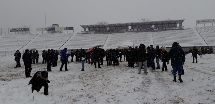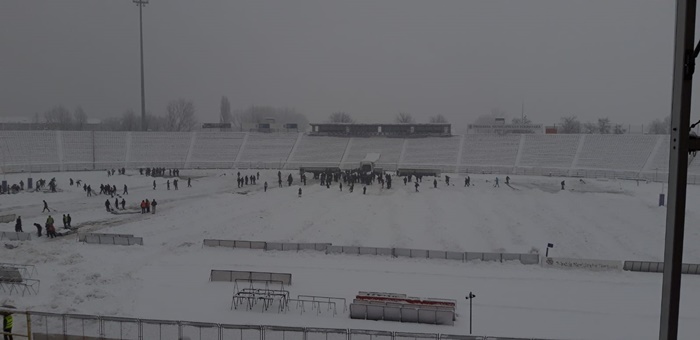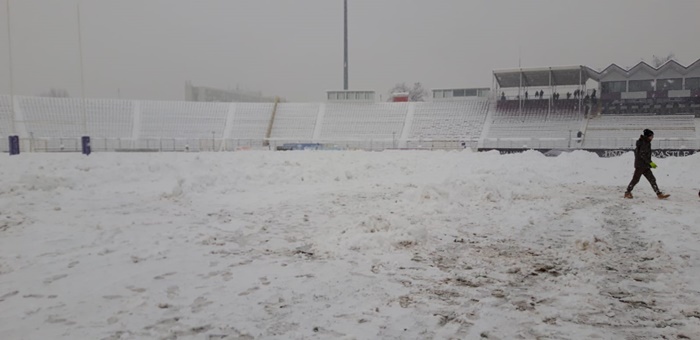 TIMISOARA. Trebuia sa fie un spectacol rugbistic de inalta tinuta, insa totul s-a transformat intr-un cosmar… alb! Partia din Challenge Cup, etapa a IV-a a grupelor principale dintre Timisoara Saracens si Northamton Saints nu se va mai disputa. Gazdele au facut eforturi sa dezapezeasca terenul, insa totul a fost in zadar, iar oficialii partidei au hotarat ca partida sa fie anulata.