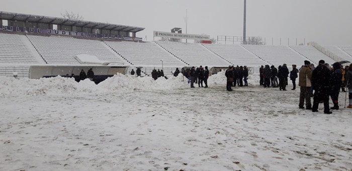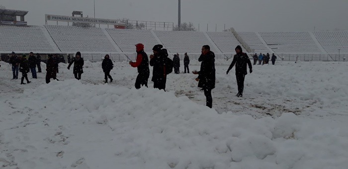 S-a mai intamplat si in urma cu doua sezoane. Atunci, desi au spus initial ca vor sa joace, jucatorii de la Stade Francais au renuntat la idee si au parasit rapid „locatia”, iar forul european a dat meci pierdut Timisoarei cu 0-28. Daca atunci terenul era inghetat, acum a fost plin cu zapada si in conditii de cod portocaliu de ninsori. Sportivii din Anglia au ramas insa pe pozitii, dand si o mana de ajutor la nevoie, insa nu a fost suficient.
