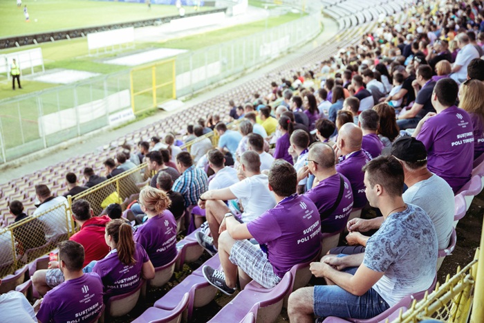 TIMISOARA. Duelul dintre Poli Timisoara si Dinamo a adus o asistenta record pentru ultimul sezon pe stadionul Dan Paltinisanu, iar printre cei care au incurajat cu tot sufletul formatia alb-violeta la derby s-au aflat si angajatii Vox Technology Park, cel mai modern business hub din vestul Romaniei.