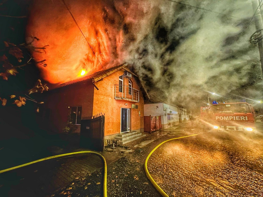“In urma incendiului au ars elemente din acoperiș și bunurile din mansardă, pe o suprafață totală de aproximativ 100 de metri pătrați, încăperile fiind protejate de flăcări.