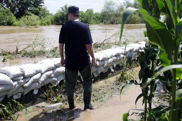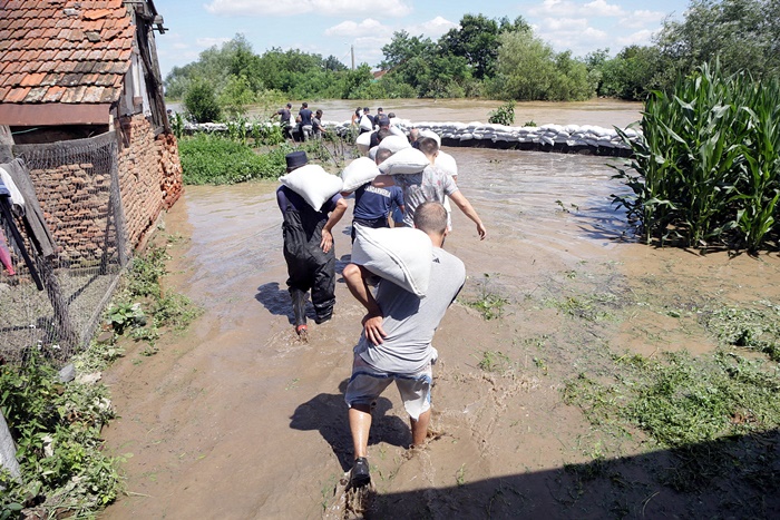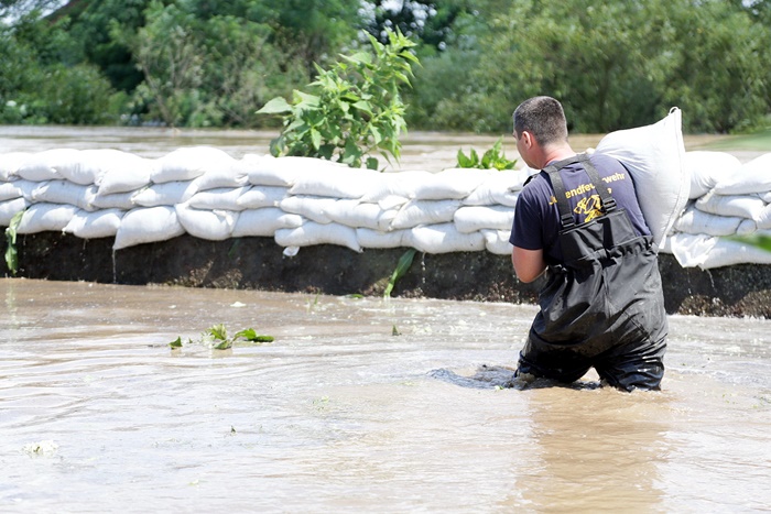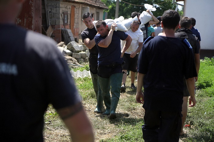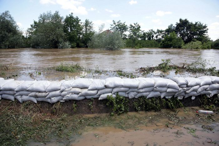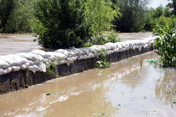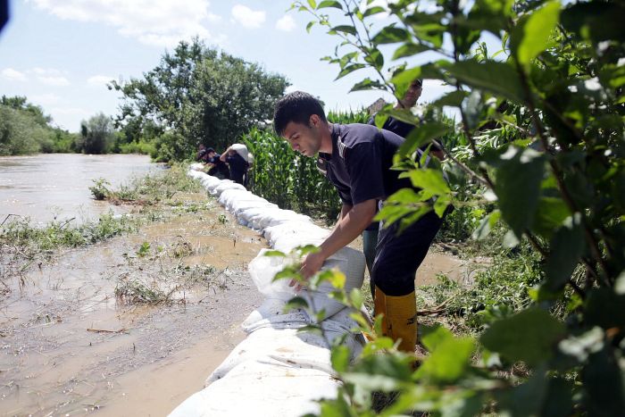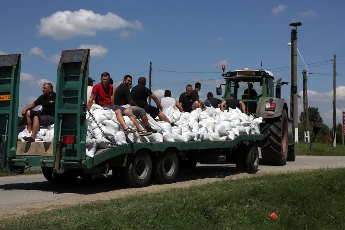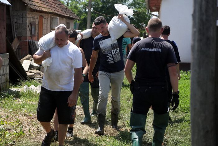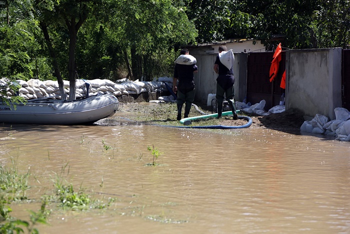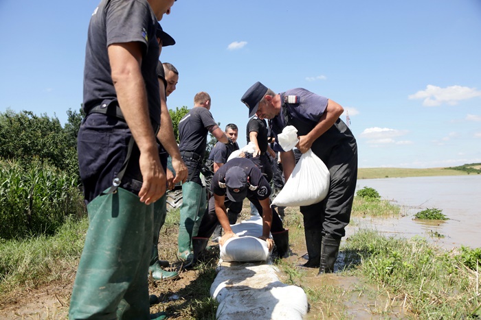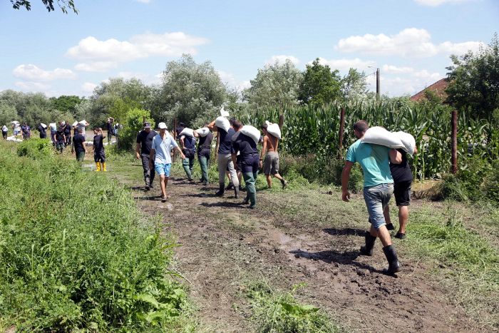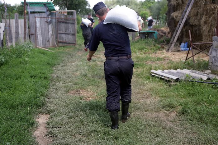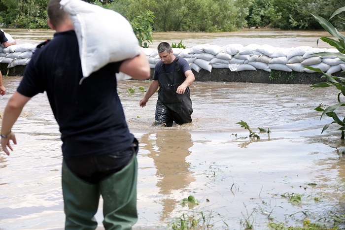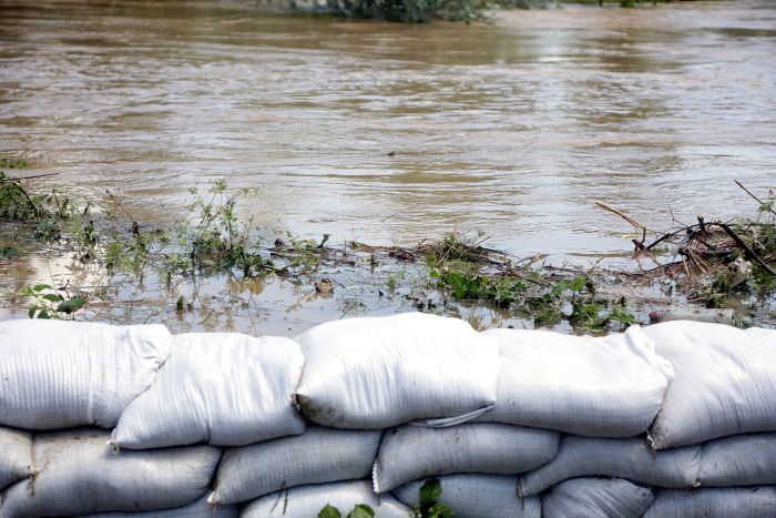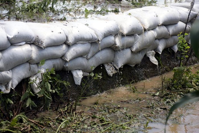 Pompierii si localnicii inalta diguri din saci de nisip, pentru a tine apa departe. Dumurile in zona sunt blocate.