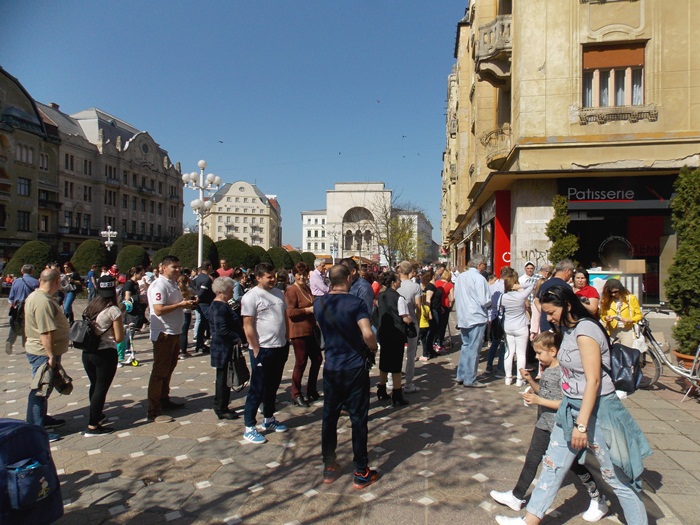 Centrul Timisoarei a fost luat cu asalt de timisorenii care dupa iarna indelungata au vrut sa se bucure de soare si de vantul de primavara. Unii au iesit doar la plimbare, altii s-au asezat la terase, iar altii au facut cozi la dozatoarele de inghetata.
