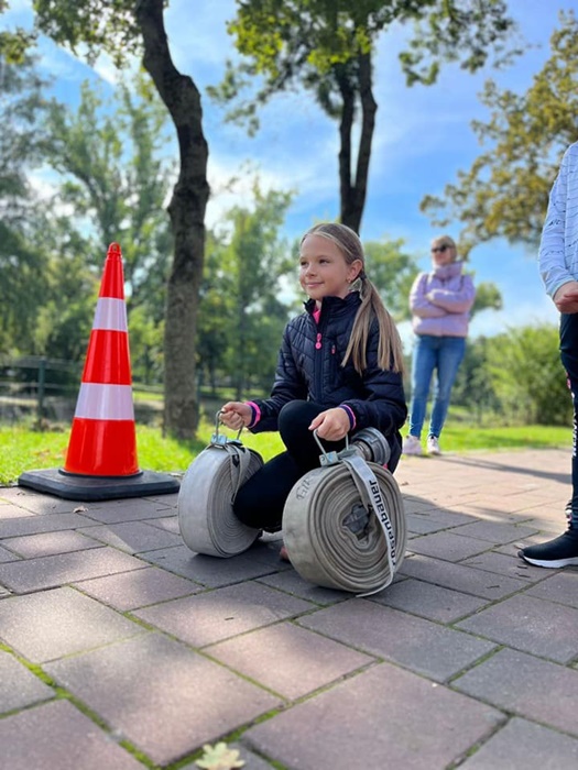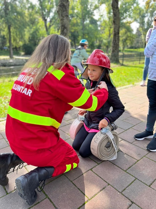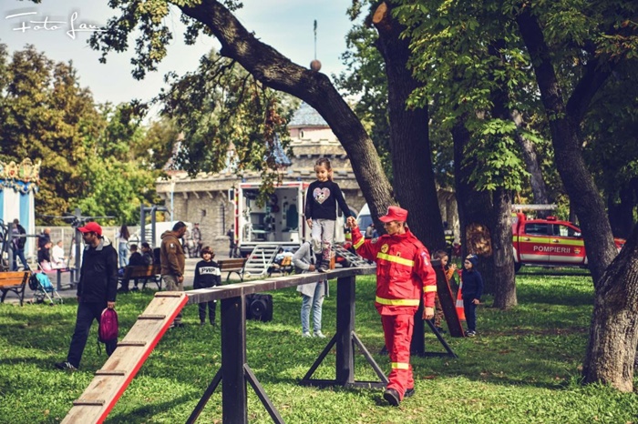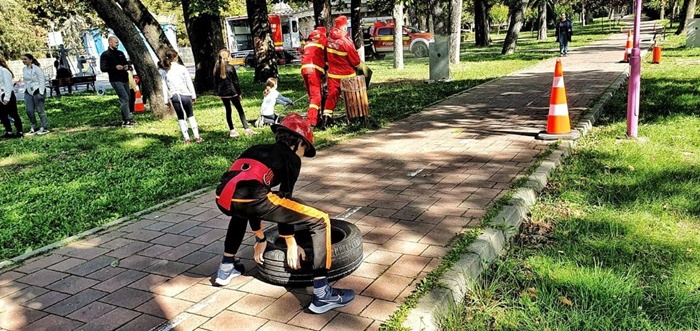 Copiii au mers pe barna, au rostogolit o anvelopa pe aleile din parc, au alergat cu rolele de furtun in maini, sau au sarit peste garduri, ajutati de membrii echipelor de interventie.