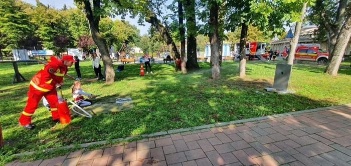 TIMISOARA. Micutii care au fost sambata in Parcul Copiilor din Timisoara au avut parte de o surpriza din partea pompierilor.