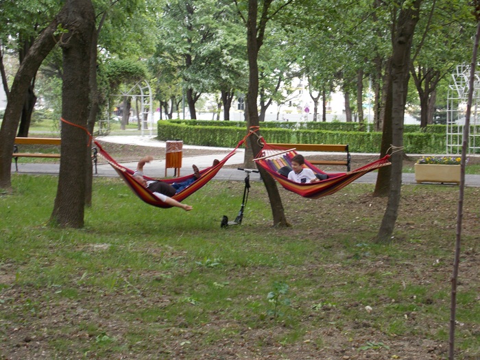 “Acestea sunt mai comode decat celelalte, pentru ca sunt din alt material. Oricum ne bucuram ca au fost puse pentru ca tot parcul arata foarte bine si ne vom relaxa aici” a spus una dintre studentele tolanite in hamace