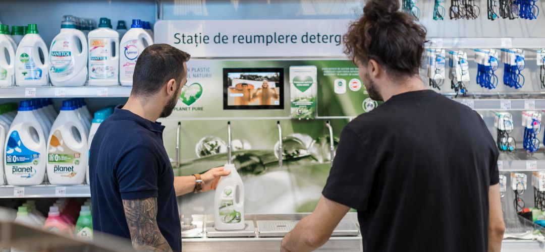 Implementarea stațiilor de reumplere a recipientelor pentru detergenții de rufe și vase BIO de la Planet Pure este o altă activitate sustenabilă a brandului, inițiativă premiată în 2023 cu trofeul de excelență de către Piața Trade, în cardul conferinței CSR Excellence: Reset Targets. Produsele Planet Pure au la bază ingrediente și compuși proveniți din extracte de plante, iar ambalajele reutilizabile sunt compuse 100% din trestie de zahăr. Stațiile de reumplere permit reîncărcarea recipientelor cu detergent de haine sau de vase, diminuând achiziția mai multor ambalaje.