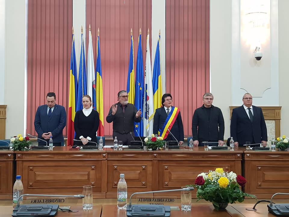 Sedinta a inceput cu intonarea imnului national, a imnului Timisoarei si a imului Golanilor, dupa care s-au tinut un moment de reculegere in memoria eroilor rapusi de gloante in Decembrie 1989.