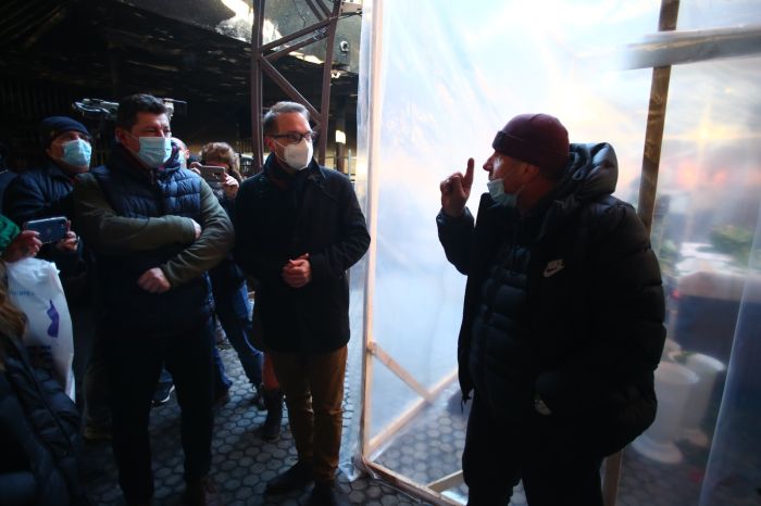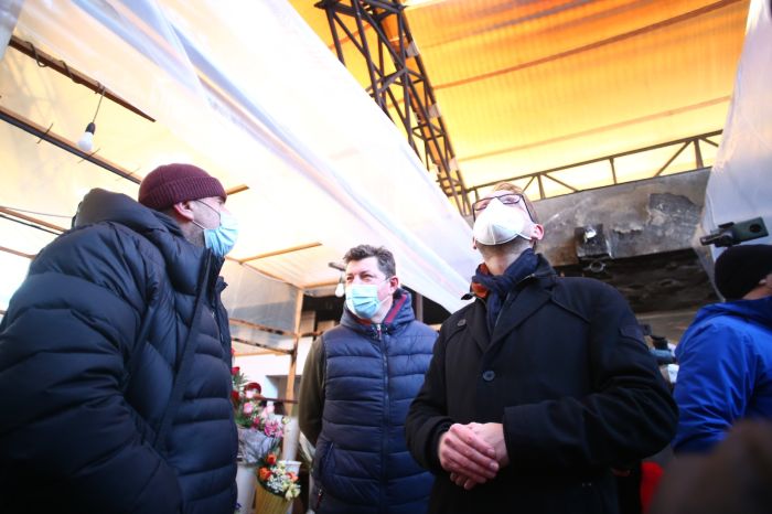 Dominic Fritz a facut o vizita sambata dupa-amiaza, in jurul orei 17.00, in Piata 700, impreuna cu viceprimarul Cosmin Tabara, unde a stat de vorba cu comerciantii de flori care au curatat locul dupa incendiu si au redeschis tarabele, mai ales ca duminica e Sfantul Valentin, iar in aceasta perioada vanzarile merg ceva mai bine.