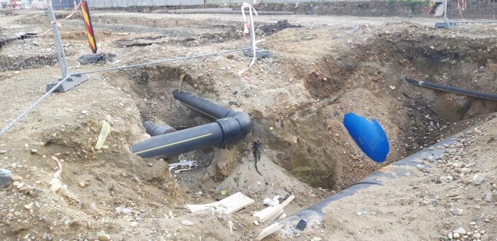 Va reamintim, la finalul verii trecute, dupa ce au decopertat asfaltul si au inceput sa faca sapaturi pentru a lucra la refacerea retelelor edilitare, muncitorii au constatat ca o conducta de termoficare care trece prin zona este deteriorata si au semnalat ca e necesara schimbarea ei.