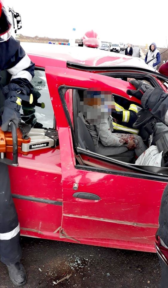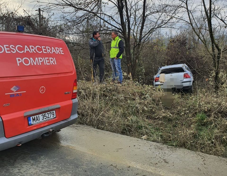 Pompierii au fost chemati sa intervina dupa ce o masina s-a rasturnat in afara soselei, in zona localitatii Batuta. Barbatul si femeia care se aflau in masina au ramas captivi intre fiarele contorsionate si a fost nevoie de interventia descarcerarii. Femeia de 70 de ani a fost preluata de urgenta de elicopterul SMURD si dusa la spital.