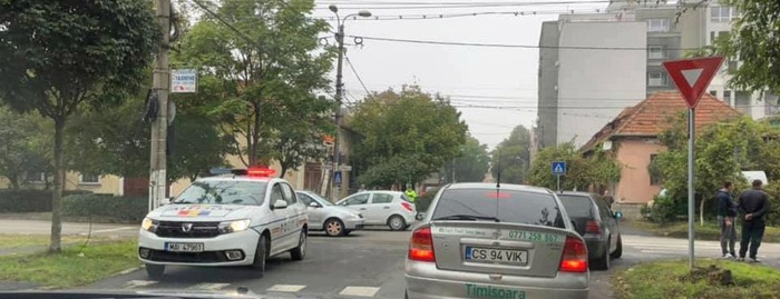 TIMISOARA. Doua masini s-au izbit puternic vineri dimineata intr-o intersectie din zona de est a Timisoarei.