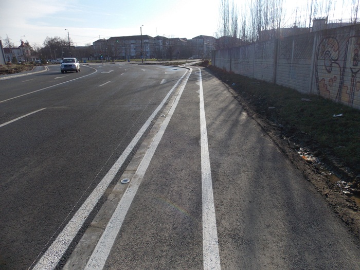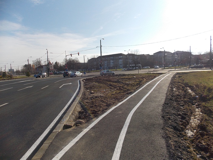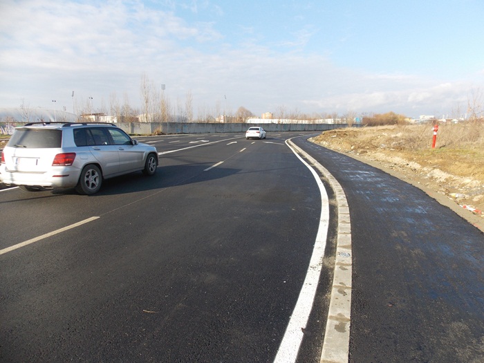 Pe o parte si pe alta a celor doua benzi au fost amenajate trotuare si piste pentru biciclete.
