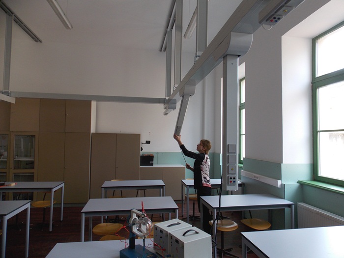 “Am dorit sa avem un laborator de fizica sigur si performant, care sa permita accesul in siguranta si sa permita si munca in siguranta. Pentru aceasta am optat pentru aceste aripi suspendate cu powerlift-urile, la carese poate renunta cand avem lectie de predare si pentru experimente e mai bine asa. Ca elev am avut mese la care au fost sursele, insa cand am ajuns profesoara la liceu acelea nu au mai functionat. Sper ca acestea sa functioneze mai mult timp si sunt si mai protejate. In momentul in care se intampla ceva avem un buton de siguranta care opreste automat si instantaneu curentul la toate mesele“, a declarat directoarea liceului Nicolaus Lenau, Elena Wolf.
