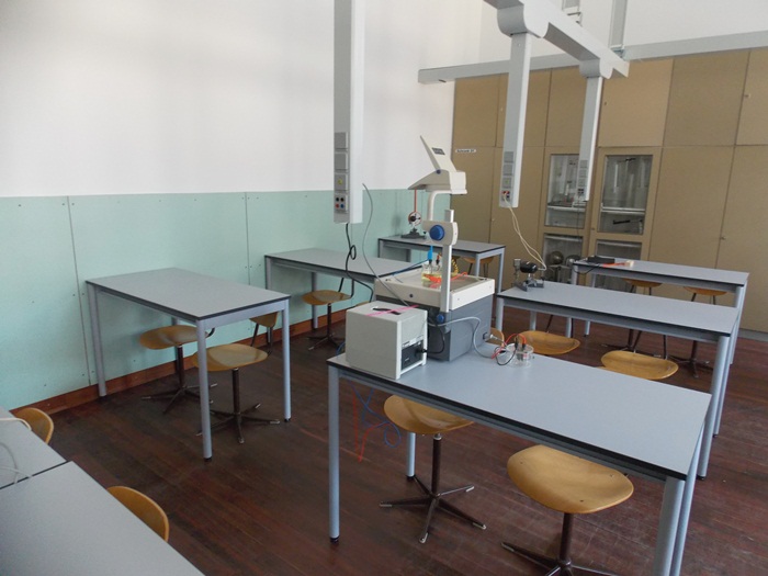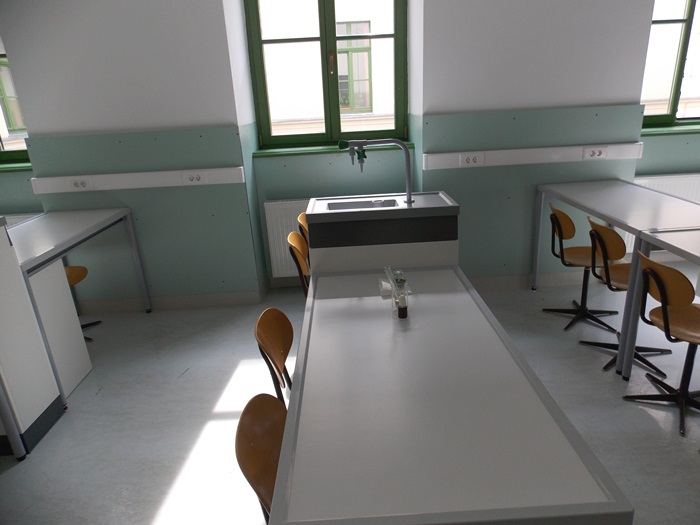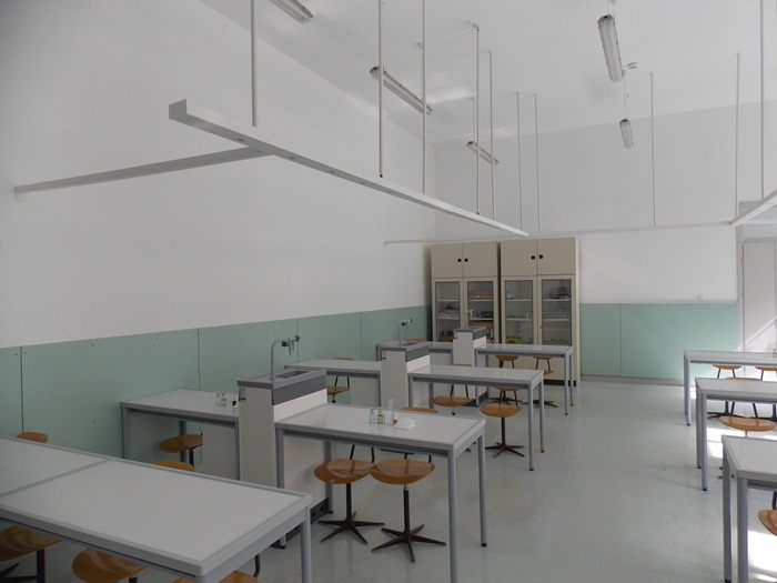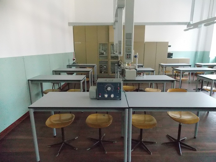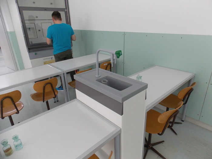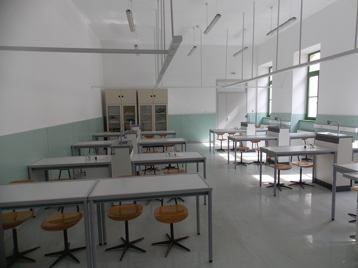 Laboratorul de chimie are instalate mese cu borduri, cu chiuvete la fiecare doi elevi care invata in sala, dar si un dus. De asemenea, pentru experimentele facute de profesor la catedra, pentru a fi protejati elevii a fost instalat un geam separator.