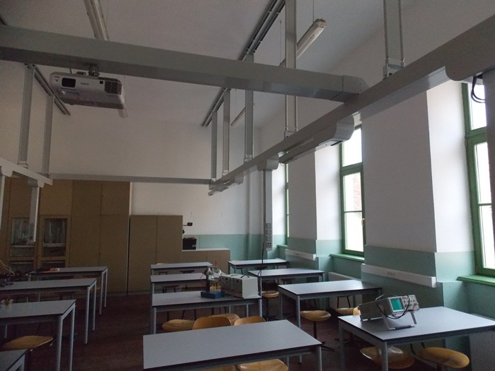 Primul modernizat a fost laboratorul de fizica, unde a fost instalat un nou sistem care ajuta copiii la experimentele pe care le vor face. Are in componenta brate extensibile in care sunt instalate prize pentru electricitate si de acces la internet. In clasa a fost instalat si un panou de comanda la care au acces numai profesorii, iar in laborator pot sa ia loc 30 de copii.