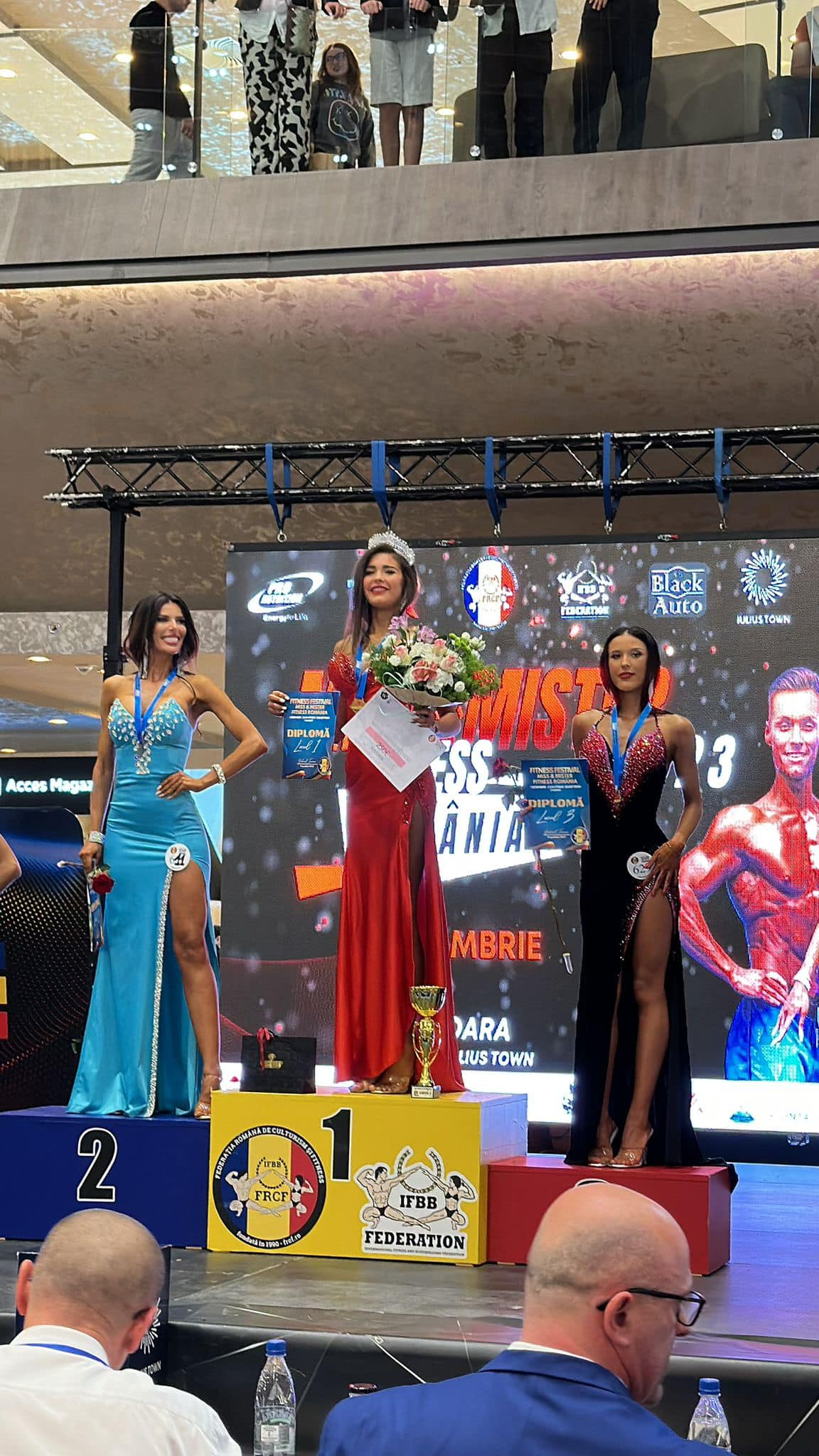 Sportiva Madalina Stanca (20 ani) a participat la 2 categorii, Bikini Fitness Junioare OPEN (16-23 ani) si Bikini Fitness Senioare – 162cm (24-35 ani), la ambele categorii ocupand prima treapta a podiumului. Deoarece a ocupat locul I la categoria Bikini Fitness Senioare – 162 cm, Madalina a trecut in etapa OVERALL, unde s-a luptat si cu campioanele categoriilor de inaltime – 166cm si +166cm, ocupand din nou primul loc in clasament, insemnand Campioana Absoluta si Miss Fitness Romania. Federatia Romana de Culturism si Fitness asigura castigatorilor OVERALL Women’s Bikini Fitness si Men’s Physique participarea la cel mai mare eveniment de Culturism si Fitness din Europa, Arnold Sports Festival Europe, unde Madalina va reprezenta Romania pe 13-15 octombrie 2023.